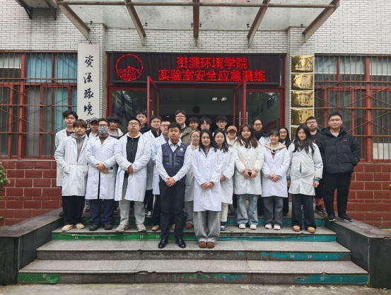 演练结束后,全体参与人员在资环楼前合影留念。
