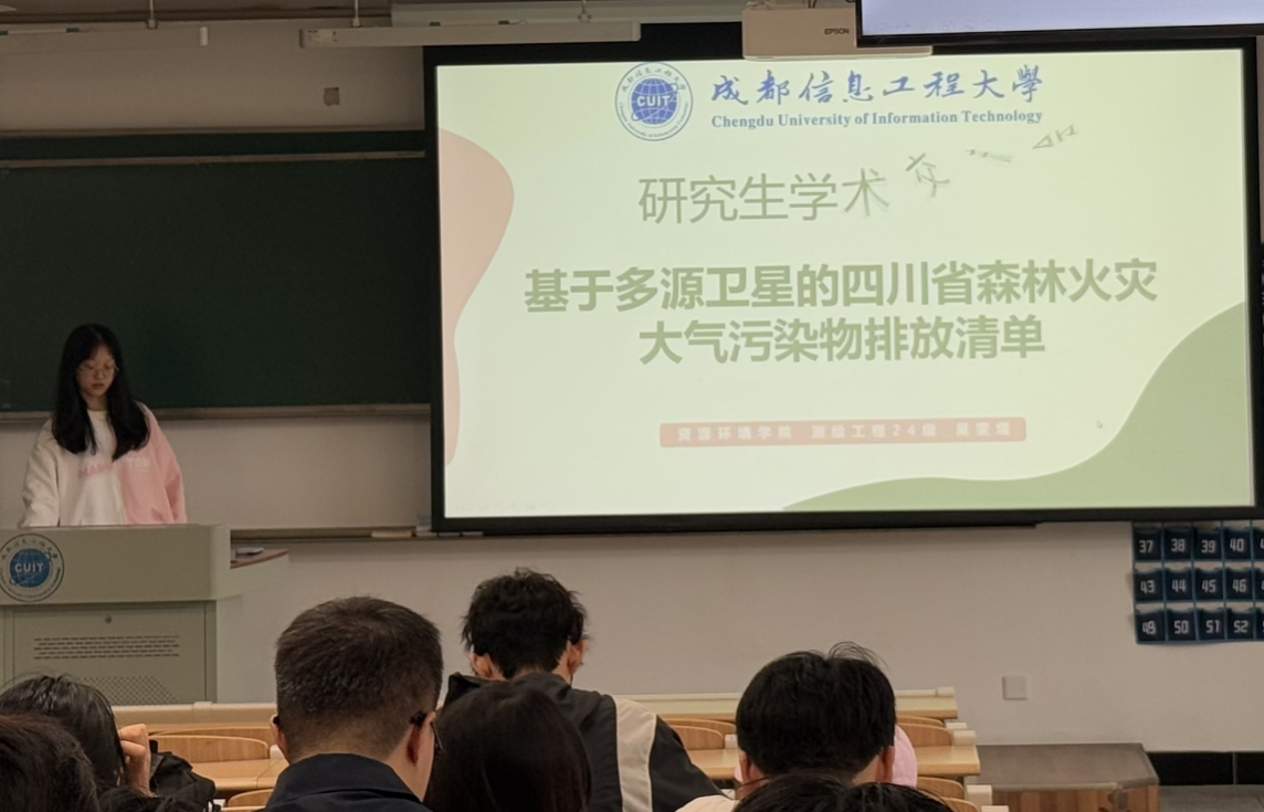吴雯熠围绕《基于多源卫星的四川省森林火灾大气污染物排放清单》研究,融合MODIS、VIIRS等多源卫星数据,构建了2022年四川省高时空分辨率排放清单,为区域空气质量评估和公共健康保护提供了重要数据基础。